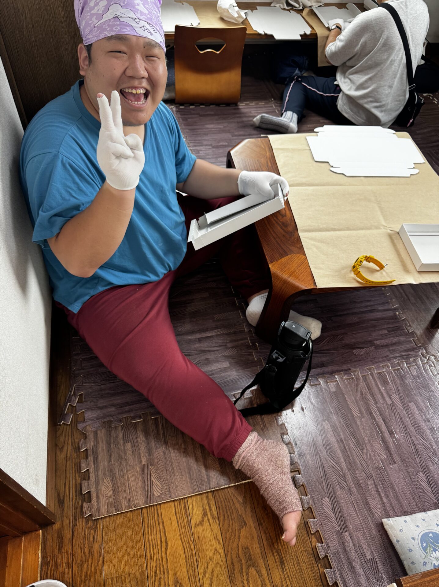 内職メンバーさん靴下が朝見つからなかったらしく、レッグウォーマーできたとのこと。